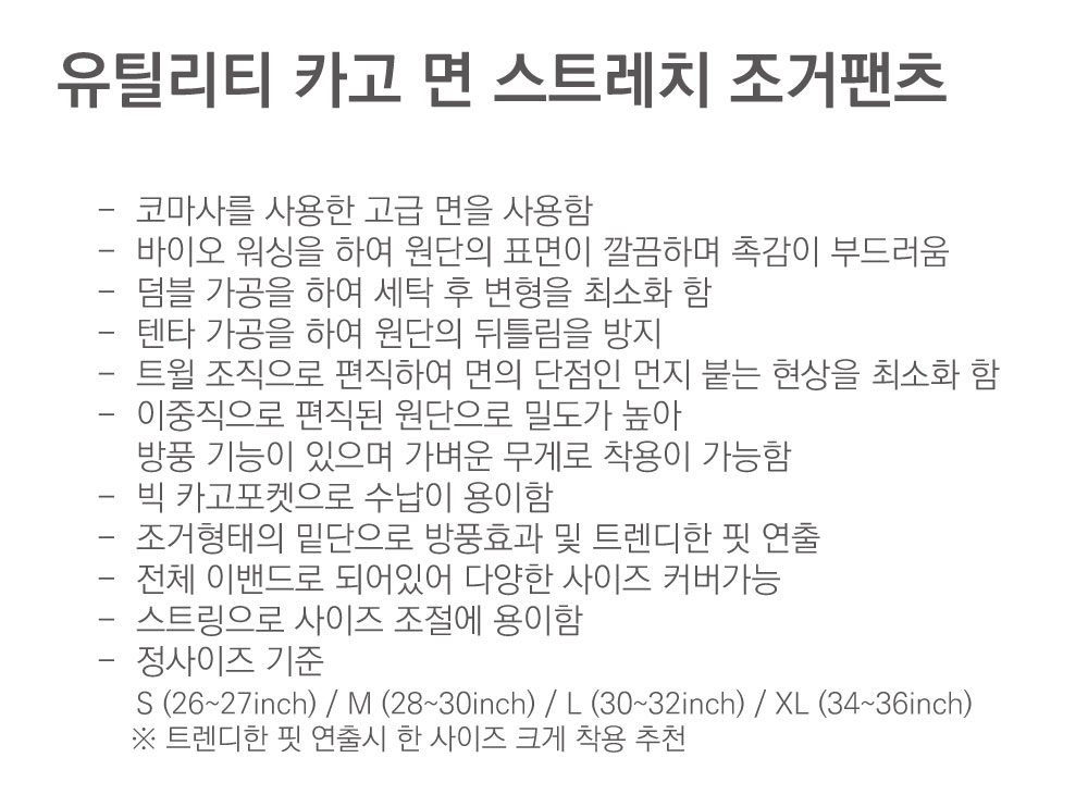 유틸리티 카고 면 스트레치 조거팬츠_BG